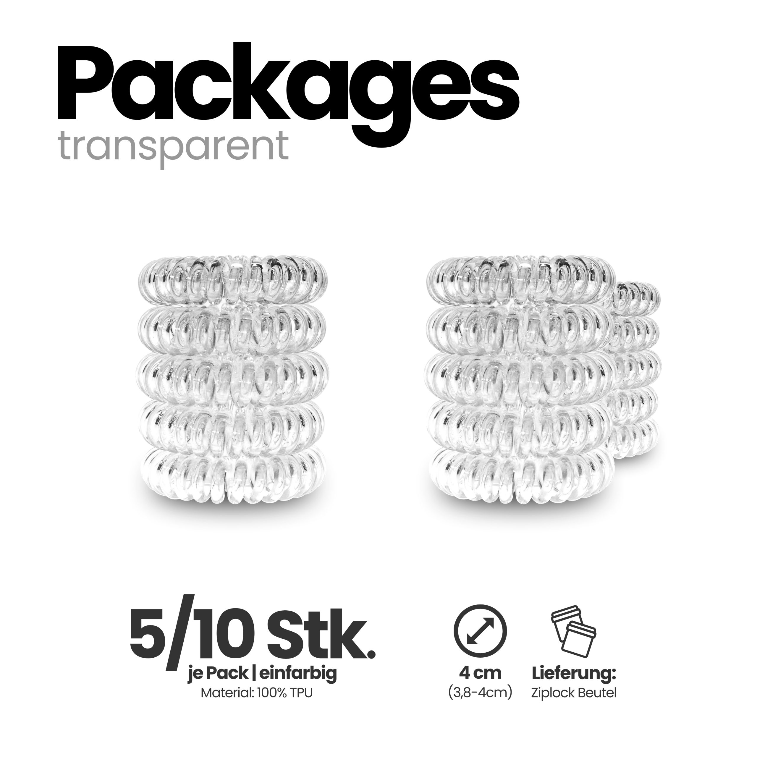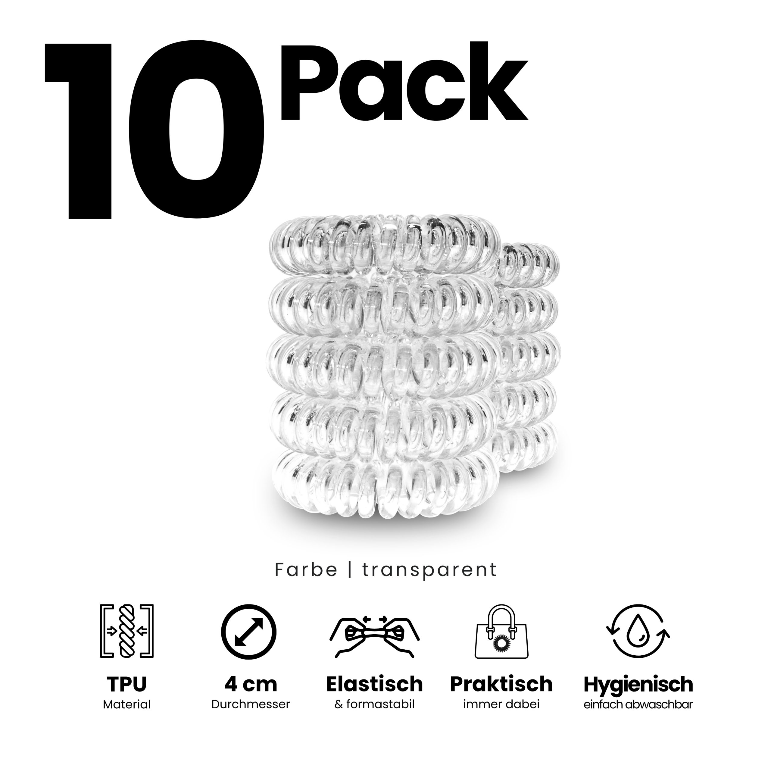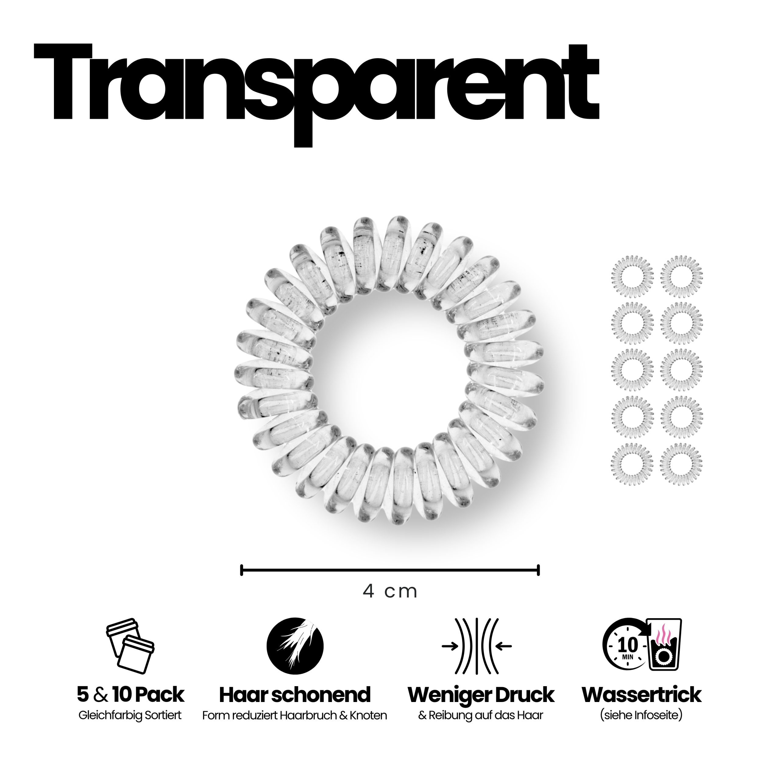 - Spiral Haargummi Transparent – 10er Pack (sortenrein).