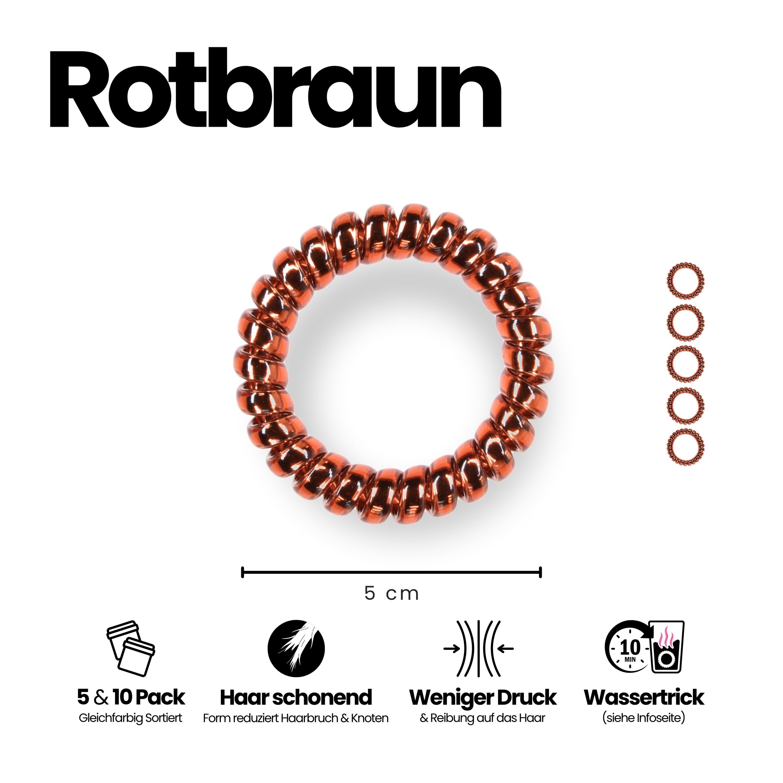 - Spiral Haargummi Rot-Braun – 5er Pack (sortenrein).