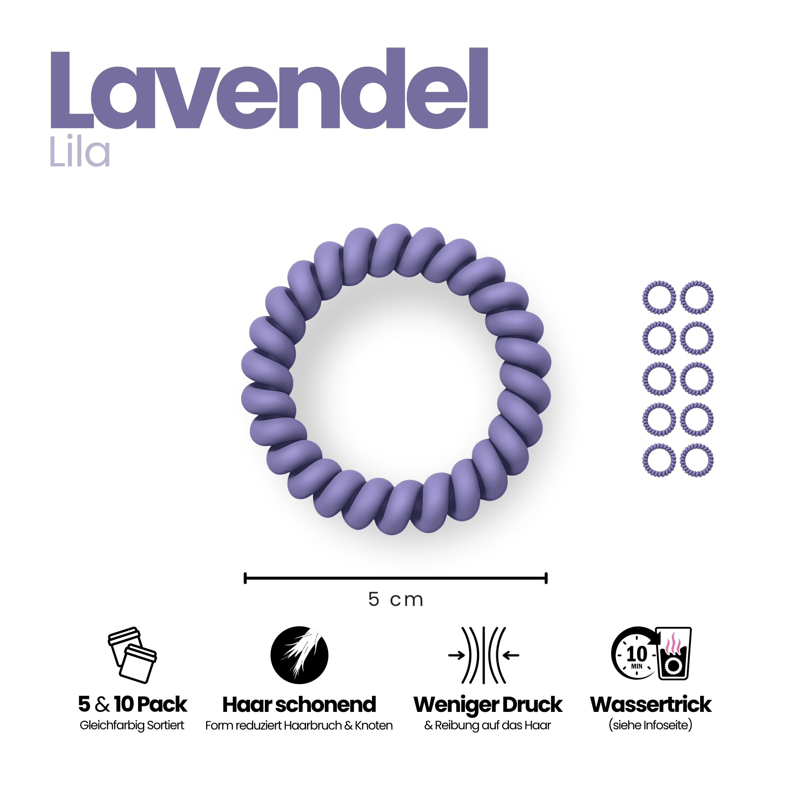 - Spiral Haargummi Lavendel – 10er Pack (sortenrein).