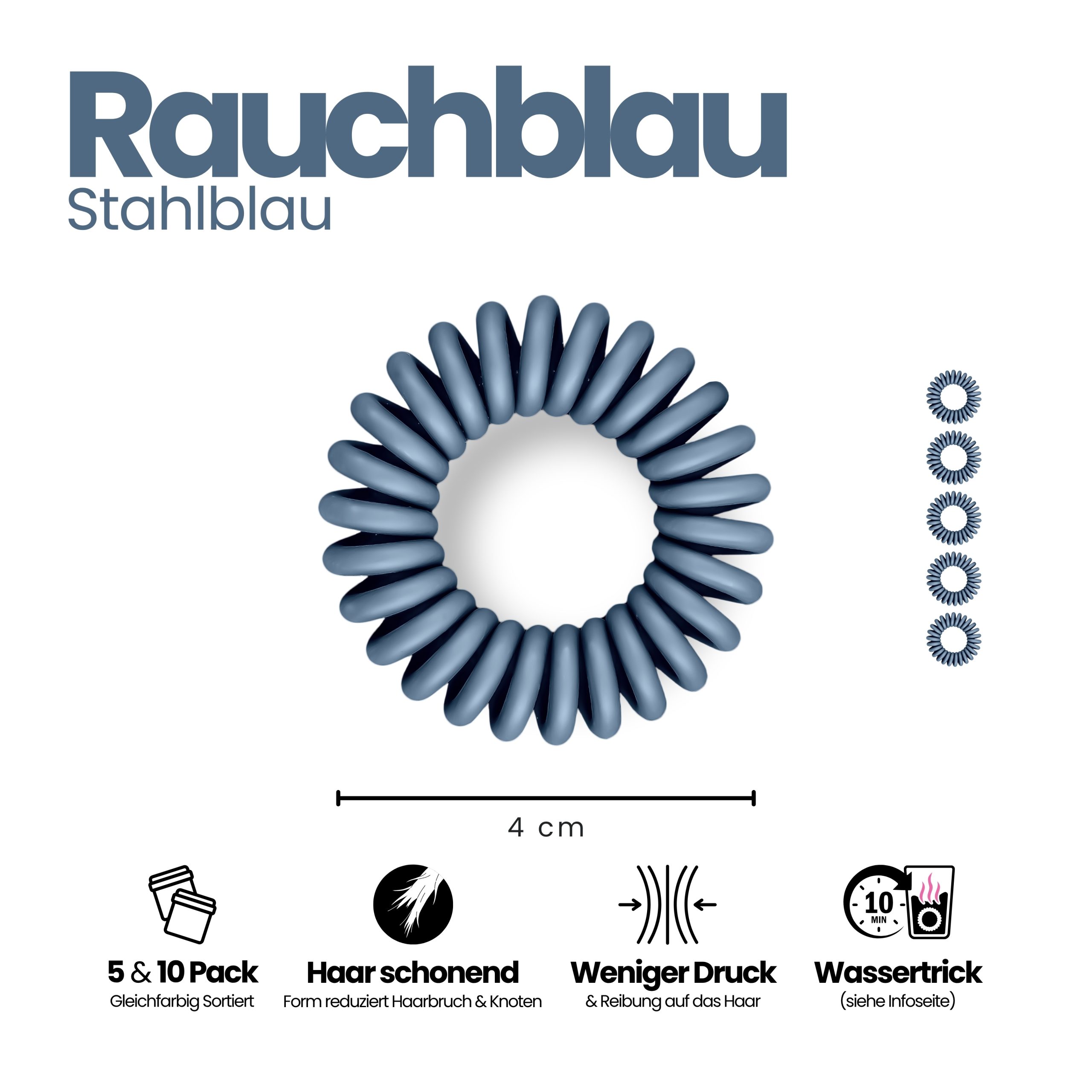 - Spiral Haargummi Rauchblau – 5er Pack (sortenrein).