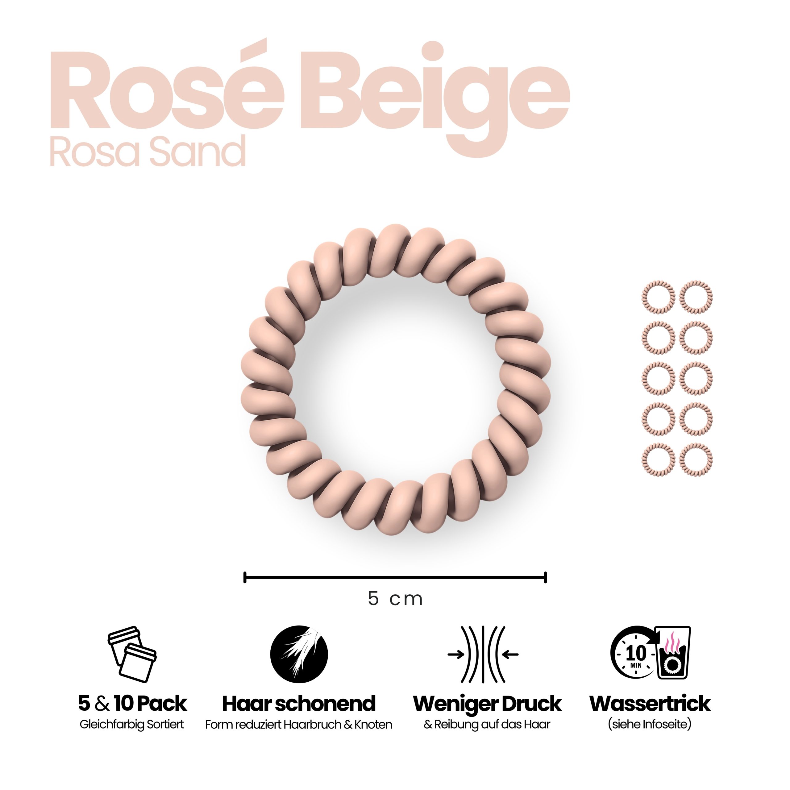 - Spiral Haargummi Rosé Beige – 10er Pack (sortenrein).